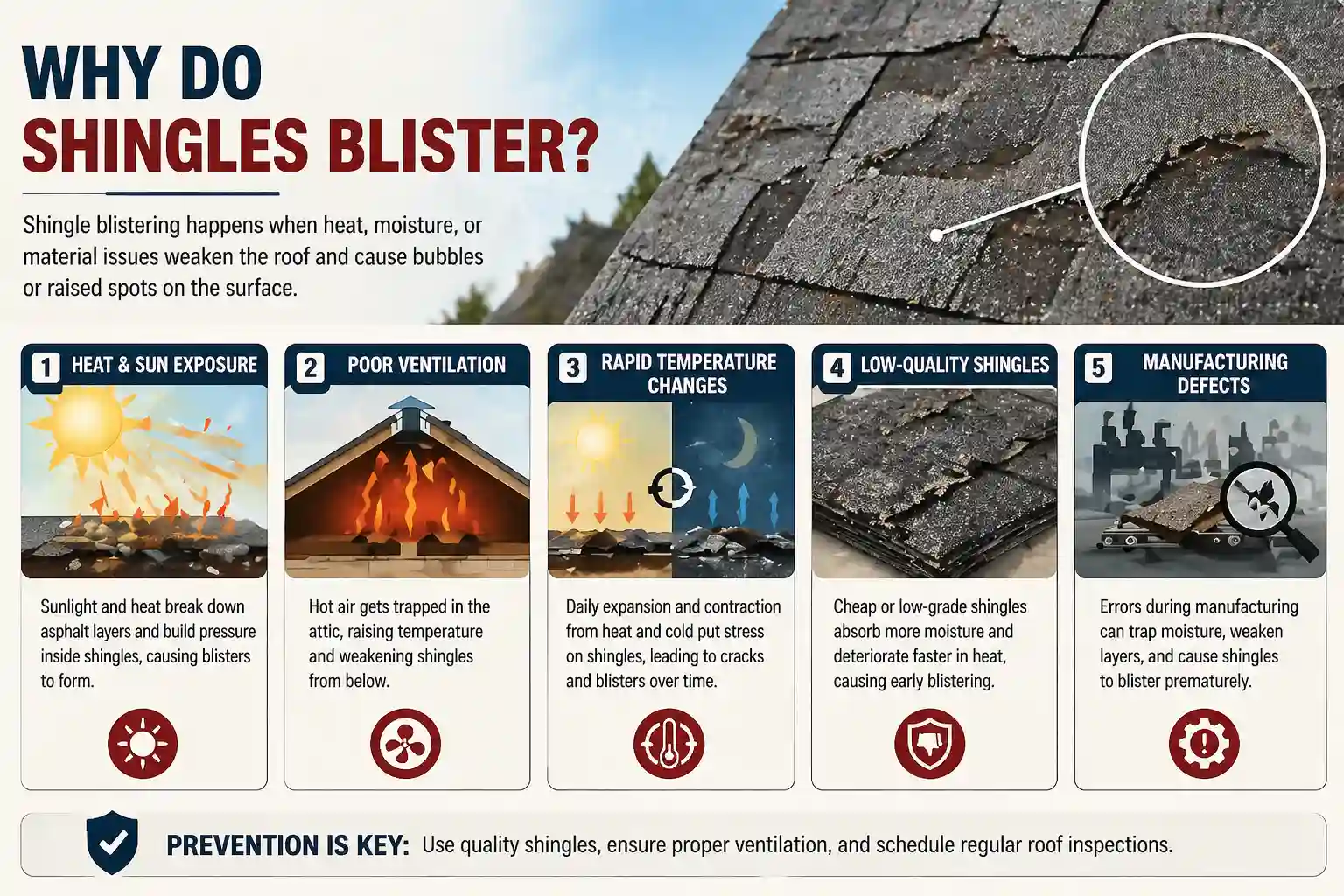 Shingle Blistering — Causes, Prevention & Repairs